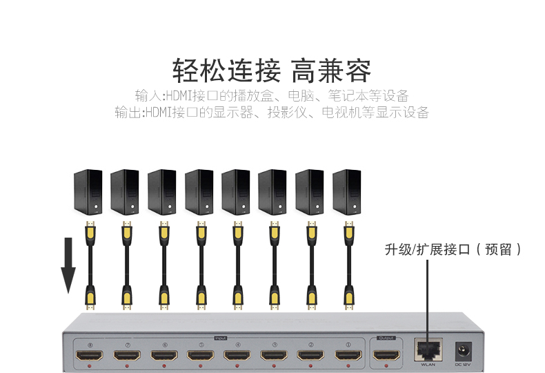 1.支持八路高清HDMI視頻信號(hào)同時(shí)輸入