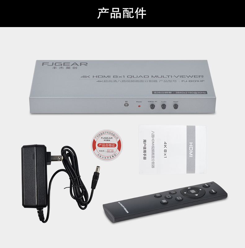 這是一款八路HDMI超清畫面分割器,它將八路HDMI信號(hào)以單獨(dú)或組合的形式顯示在同一個(gè)顯示器上面,可在分割器上自由控制