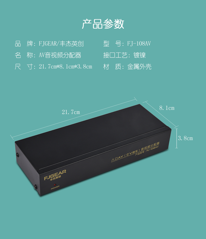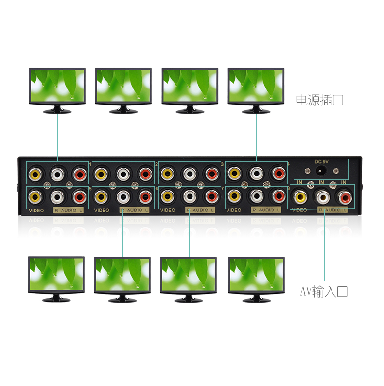 產(chǎn)品參數(shù) 1、 視頻: 額定輸入信號電平及阻抗:VS 0.8-1.0Vp-p/75Ω 額定輸出信號電平及阻抗:VS 0.8-1.0Vp-p/75Ω 頻帶寬度:50Hz-5.5MHz 輸入路數(shù):1路 輸出路數(shù):8路 2、 音頻: 額定輸入信號電平及阻抗:2V(RMS)/47KΩ 額定輸出信號電平及阻抗:2V(RMS)/1KΩ 頻率特性:10Hz-20KHz,0db 輸入路數(shù):1路(左右聲道) 輸出路數(shù):8路(左右聲道)