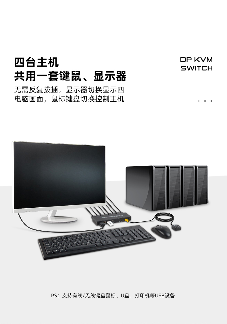 3.產(chǎn)品特性:四臺電腦共用鍵鼠顯示器