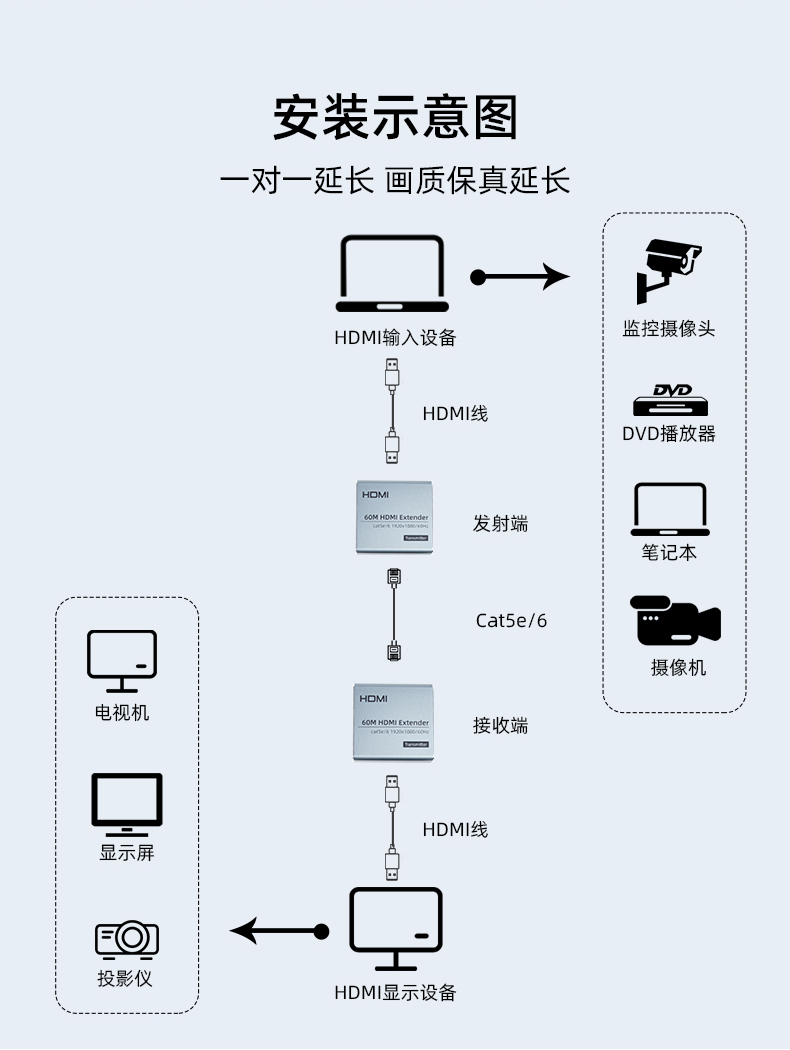 1.視頻延長距離:60米 (建議使用純銅6類網(wǎng)線)