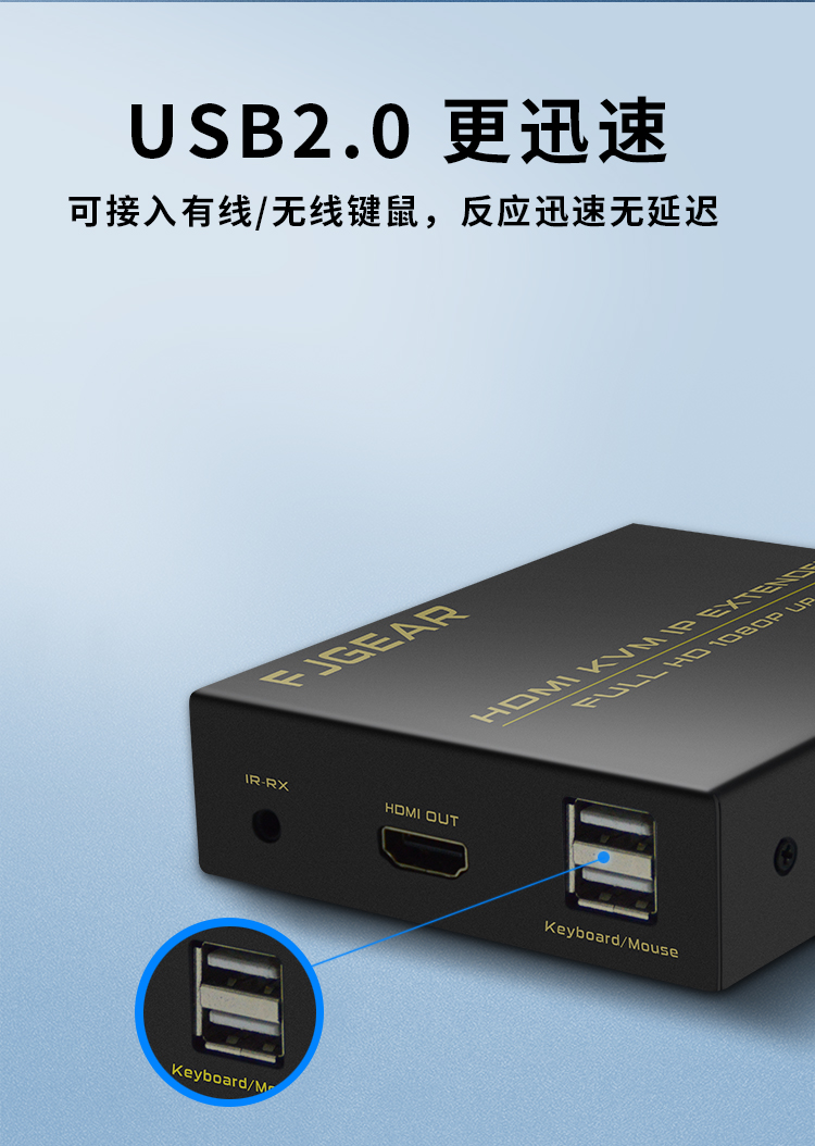 本產(chǎn)品是一款HDMI高清視頻kvm的網(wǎng)線延長器,且?guī)в屑t外回傳