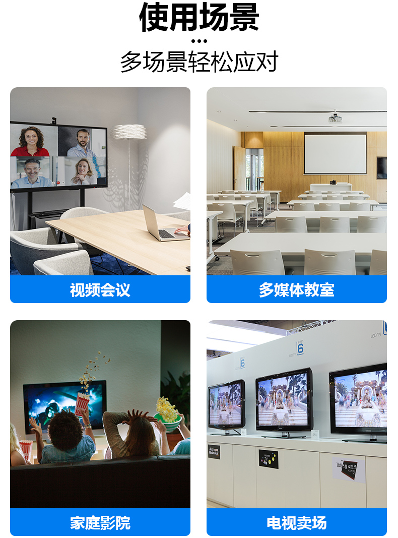 6.該產(chǎn)品廣泛應(yīng)用于教育,廣告,會(huì)議室,家庭視頻播放等場合