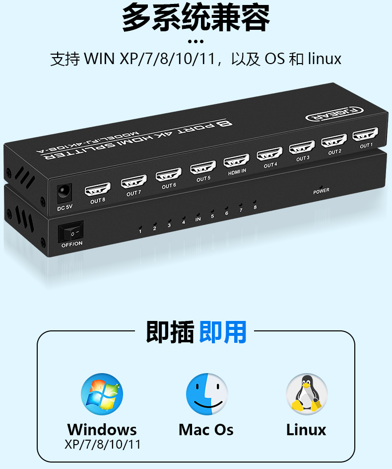 1.最高支持4K*2K@25/30HZ,向下兼容多種分辨率