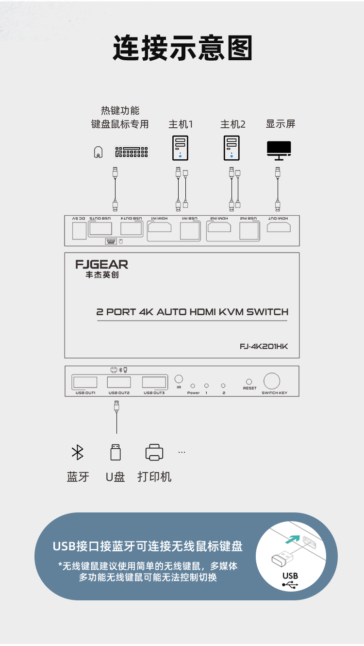 盤、藍(lán)牙適配器等USB設(shè)備,適用于教學(xué)會議、廣告演示、