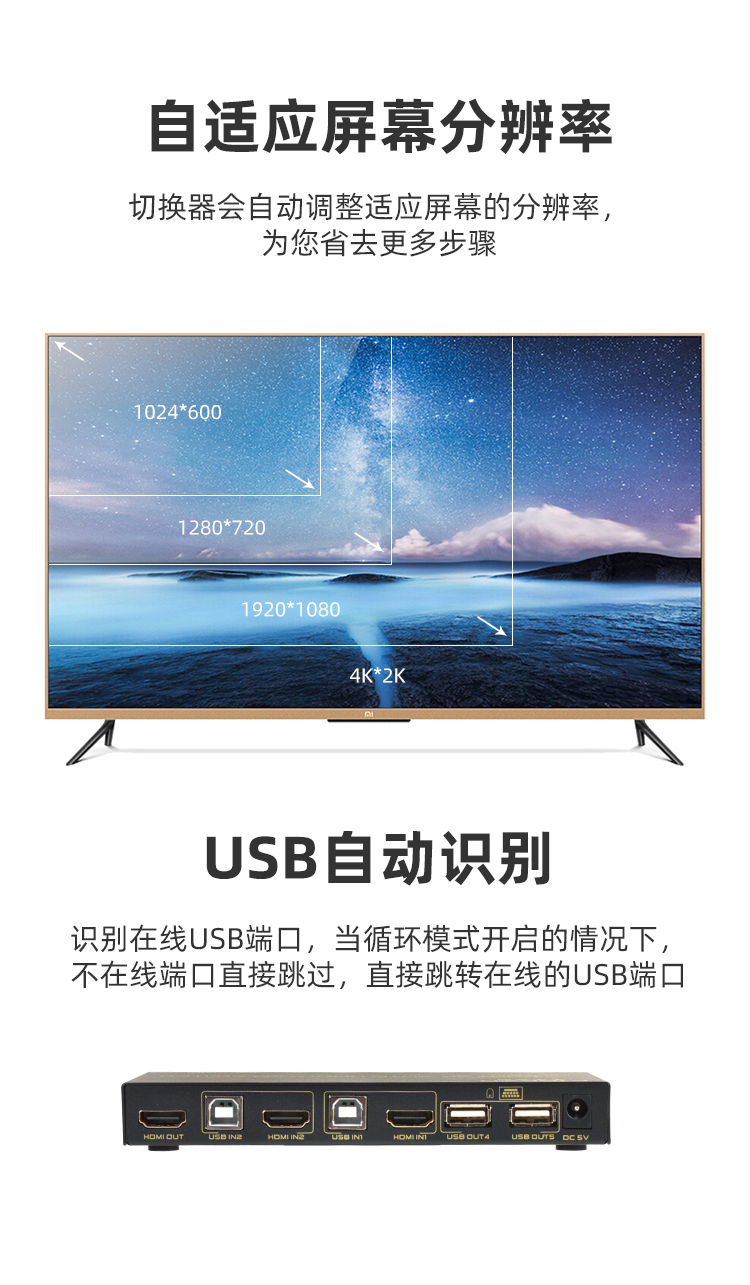 路多功能HDMI KVM切換器,支持4K超清信號傳輸,有4種