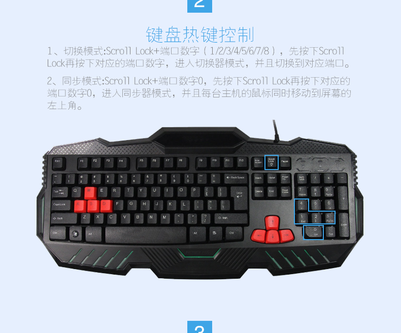 “Scroll Lock”+“端口數(shù)字”:先按下“Scroll Lock”,再按下對(duì)應(yīng)的“端口數(shù)字”,進(jìn)入切換器模式,并且切換到對(duì)應(yīng)端口。