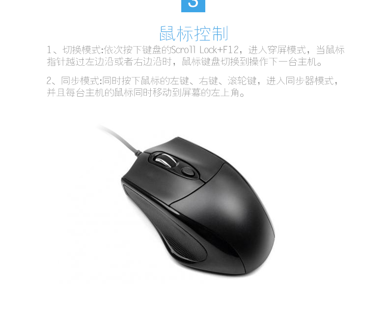 “Scroll Lock”+“數(shù)字0”:先按下“Scroll Lock”,再按下對(duì)應(yīng)的“數(shù)字0”,進(jìn)入同步器模式,并且每臺(tái)主機(jī)的鼠標(biāo)同時(shí)移動(dòng)到屏幕的左上角