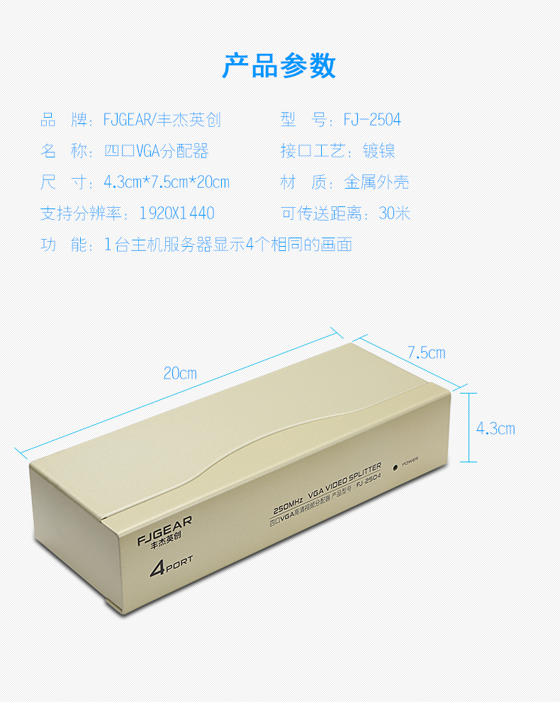 1:250MHz 系列VGA分配器是高清VGA信號分配器,適用于液晶電視機和投影儀等大屏幕顯示設備。具有長距離驅(qū)動功能