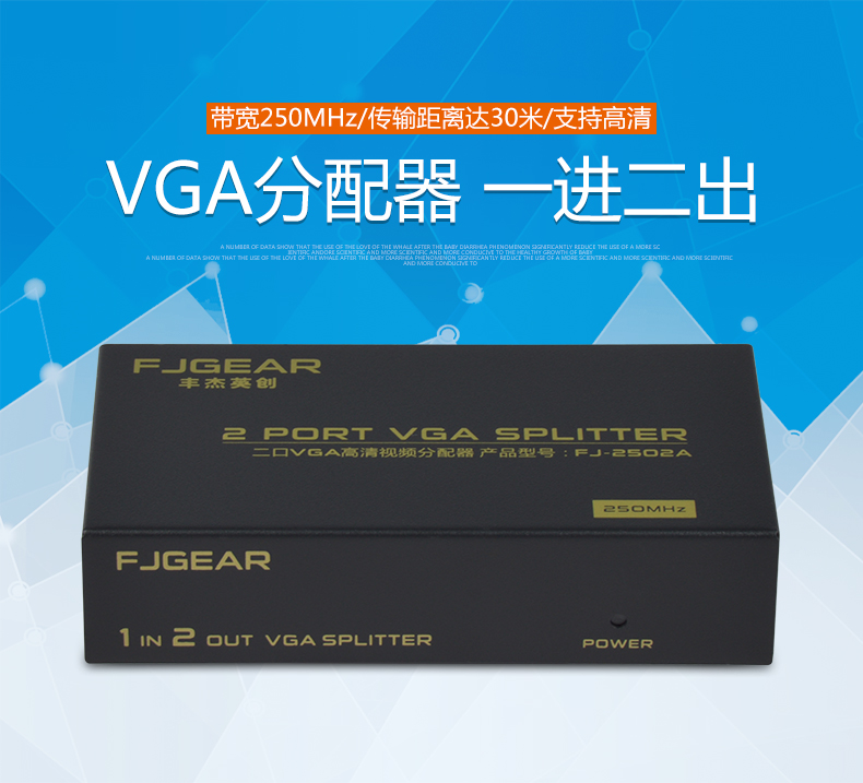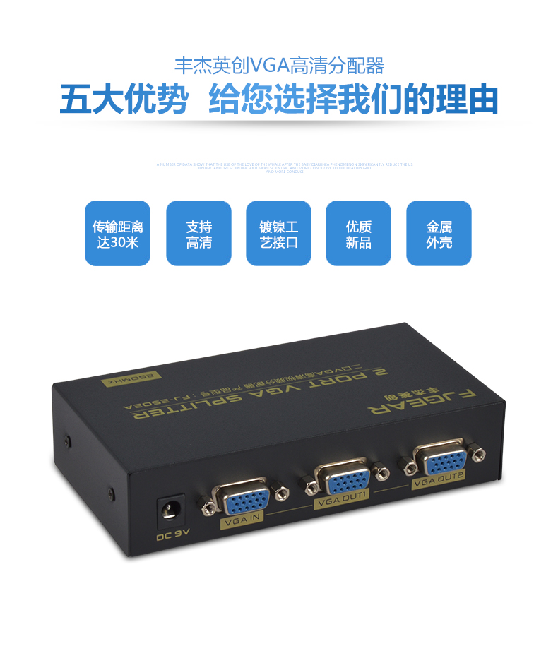 1:250MHz 系列VGA分配器是高清VGA信號分配器,適用于液晶電視機和投影儀等大屏幕顯示設備。具有長距離驅動功能