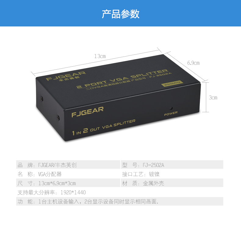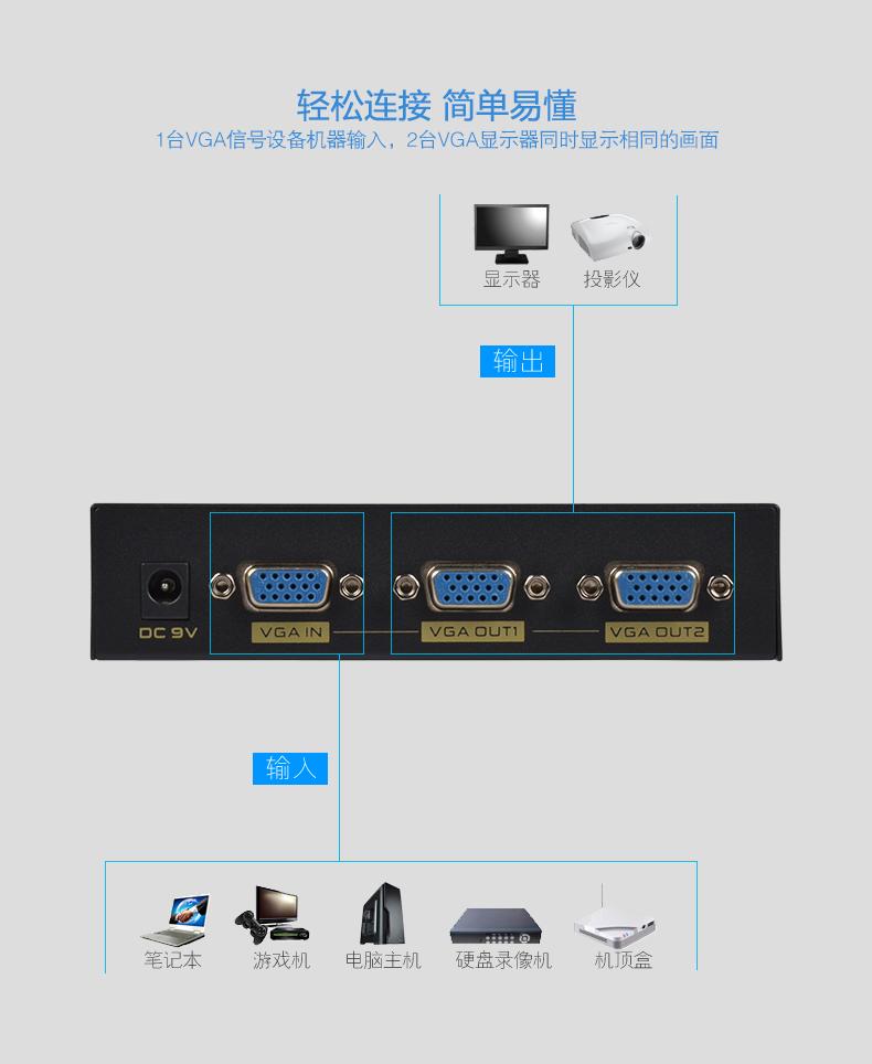 2:該系列VGA分配器有二路、四路、八路等多種端口