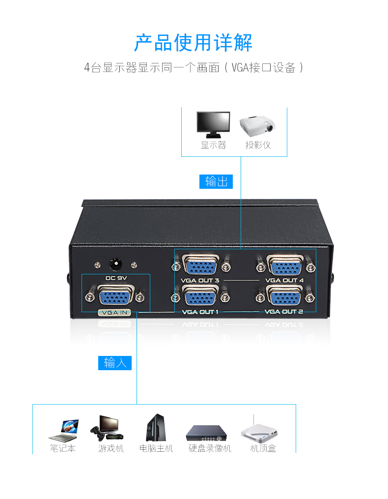 2:該系列VGA分配器有二路、四路、八路等多種端口
