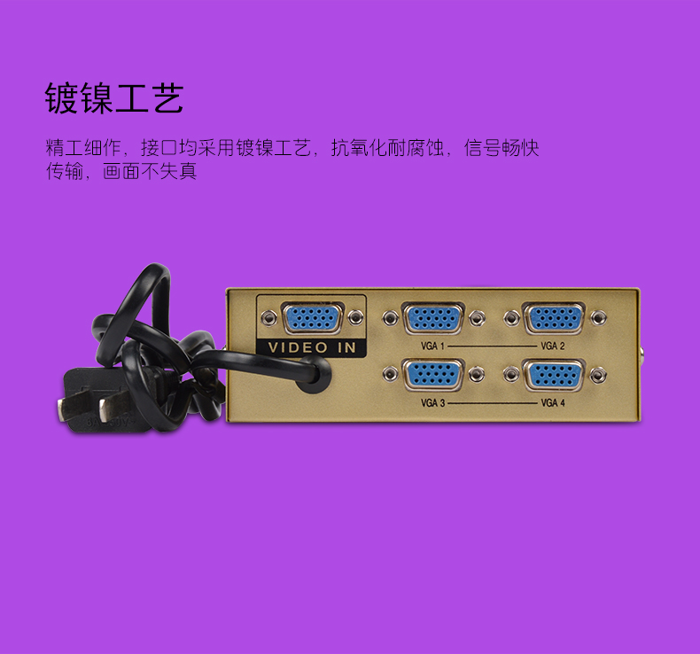 VGA視頻分配器是專業(yè)應(yīng)用于帶有VGA接口的顯示產(chǎn)品(例如:帶VGA輸入接口的電視機(jī)的展示、多媒體教室、電子公告屏、廣告機(jī))的VGA視頻分配等。應(yīng)用于公共視訊系統(tǒng)(證券公司、期貨市場(chǎng)、金融證券等)、視頻會(huì)議系統(tǒng)、廣播電視系統(tǒng)、閉路電視系統(tǒng)、電視監(jiān)控系統(tǒng)、簡(jiǎn)易電腦教學(xué)系統(tǒng)、高品質(zhì)多媒體展示系統(tǒng)、等離子電視機(jī)展示會(huì)場(chǎng)、計(jì)算機(jī)展示會(huì)場(chǎng)的視頻相匹配處理設(shè)備。