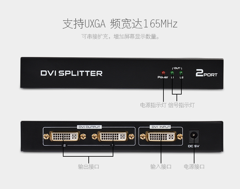 1.1路DVI輸入,2路DVI輸出