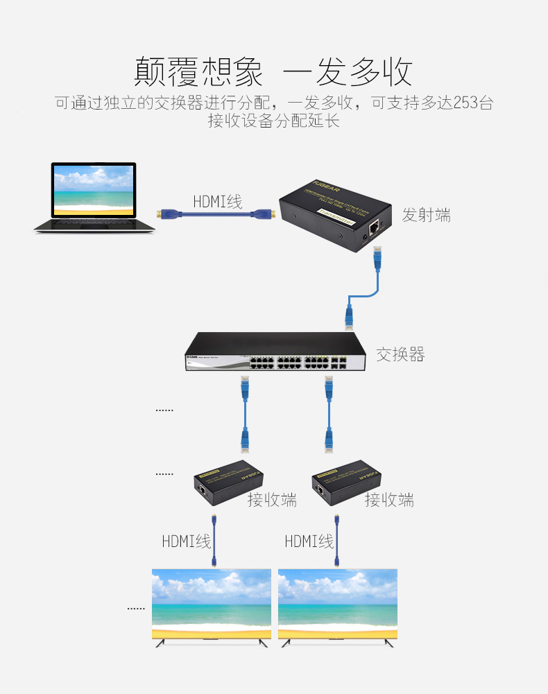 2.采用CAT-5E/6網(wǎng)線代替HDMI線來實(shí)現(xiàn)遠(yuǎn)距離傳輸