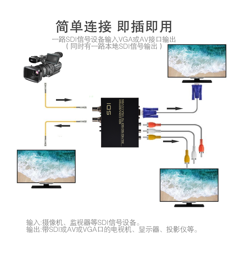 本產(chǎn)品提供一路(SD-SDI/HD-SDI/3G-SDI)SDI信號(hào)轉(zhuǎn)換成VGA或者AV信號(hào),支持全高清SDI信號(hào)的輸入及輸出;操作簡(jiǎn)單易用,穩(wěn)定性和可靠性極高;廣泛應(yīng)用于SDI信號(hào)的各級(jí)電視臺(tái)播出機(jī)房和非編制作領(lǐng)域以及安防監(jiān)控、培訓(xùn)展示場(chǎng)所等領(lǐng)域。