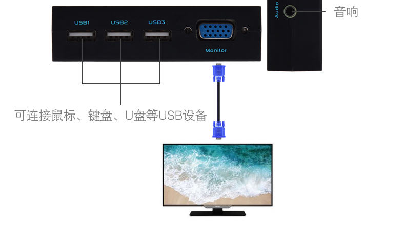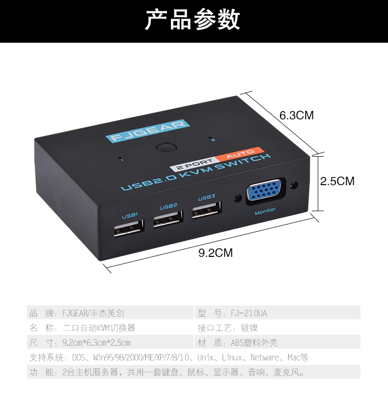 201UA是兩臺電腦(服務(wù)器)的KVM(鍵盤、視頻、鼠標(biāo) Keyboard、Video、Mouse)切換器。通過它,只需一套USB接口的鍵盤鼠標(biāo)和普通顯示器便可查看和操作與KVM切換器連接的任意一臺電腦(服務(wù)器),KVM切換器還備有一個USB插口供用戶插U盤,方便文件資料的拷貝,給我們的工作帶來極大的便利。