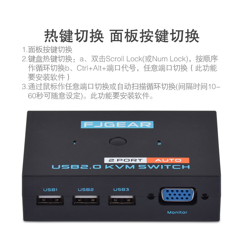 1、通過產(chǎn)品面板上的按鍵作任意端口切換。