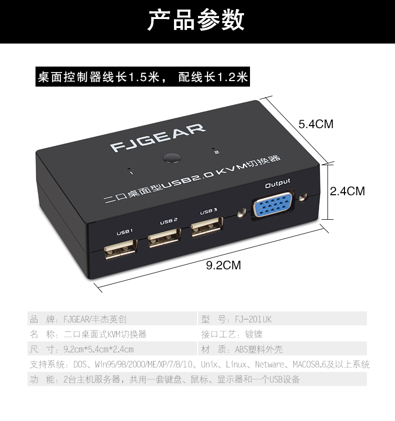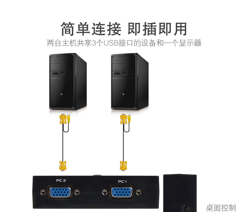 這是一款2口KVM切換器,它可以讓兩臺電腦共享3個帶USB接口的設(shè)備(如打印機、掃描儀、多功能一體機、U盤、鼠標、鍵盤、無線藍牙設(shè)備),用按鍵即可輕松切換;極大的提高了辦公效率,同時也節(jié)省了采購成本和空間資源;這是家庭辦公及小型辦公場所的不二之選。