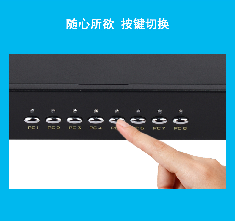 可手動(dòng)按鍵切換來實(shí)現(xiàn)多臺(tái)電腦間的切換。