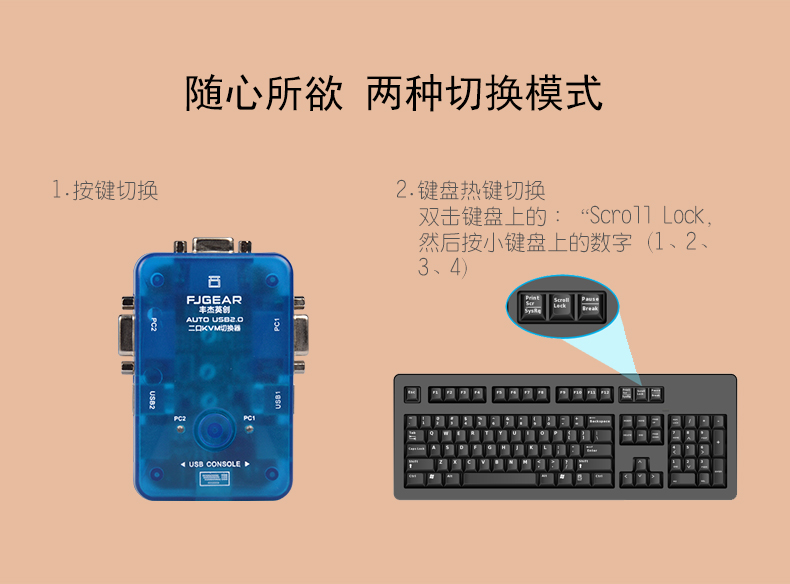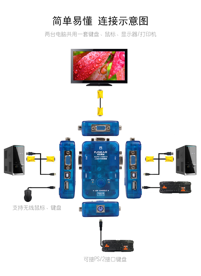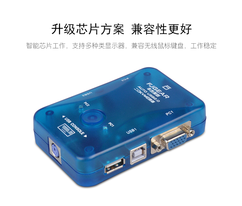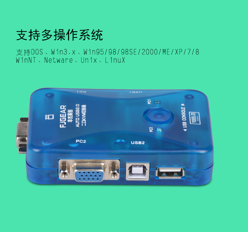 產(chǎn)品特性 1:2/4端口的KVM切換器采用迷你型袖珍設(shè)計(jì),輕便易用。 2:USB2.0端口 3:支持Microsoft智能滑鼠、羅技網(wǎng)絡(luò)滑鼠等 4:支持DOS、Win3.X Win95/98/98SE/2000/ME/XP、WinNT、Netware、Unix、Linux 5:支持熱插拔,不需要關(guān)掉KVM切換器和電腦就可以插上或者拔掉所連接的電腦 6:優(yōu)良的畫(huà)質(zhì),分辨率可以上到1920*1440,帶寬:250MHz 7:無(wú)須軟件控制,可以通過(guò)按鈕或者熱鍵選擇所要操作的電腦主機(jī) 8:有為監(jiān)控主機(jī)運(yùn)行而設(shè)的自動(dòng)檢測(cè)功能 9:顯示監(jiān)控狀態(tài)的LED指示燈