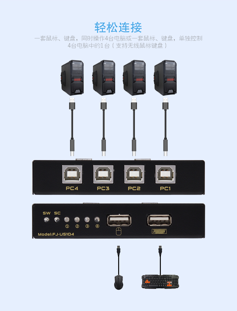 通過本產(chǎn)品你只需一套鼠標,鍵盤即可分時,或者同時操作多臺電腦,主要廣泛應(yīng)用于辦公,教學,娛樂,軍事,游戲,信息等眾多平臺,它為你節(jié)省時間,金錢,設(shè)備,能源,大大提高你的工作效率,是你工作的好幫手。