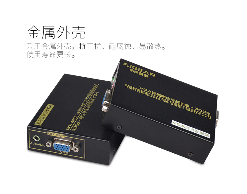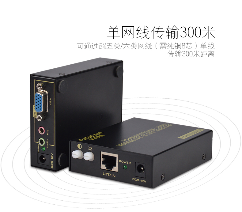 采用CAY5/5E/6網(wǎng)線替代VGA線來實現(xiàn)遠程距離傳輸,通過這套設備,VGA信號最遠傳輸距離可達300米。
