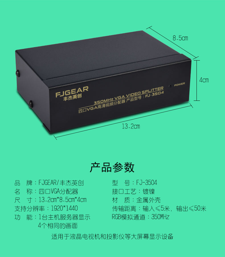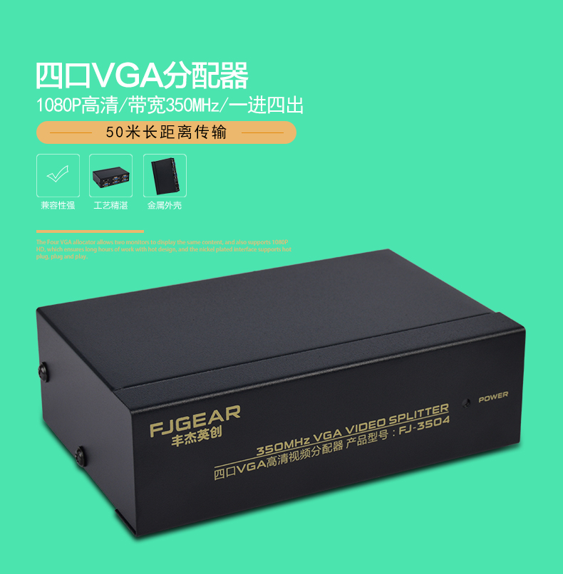 1:350MHz 系列VGA分配器是高清VGA信號分配器,適用于液晶電視機和投影儀等大屏幕顯示設(shè)備。具有長距離驅(qū)動功能