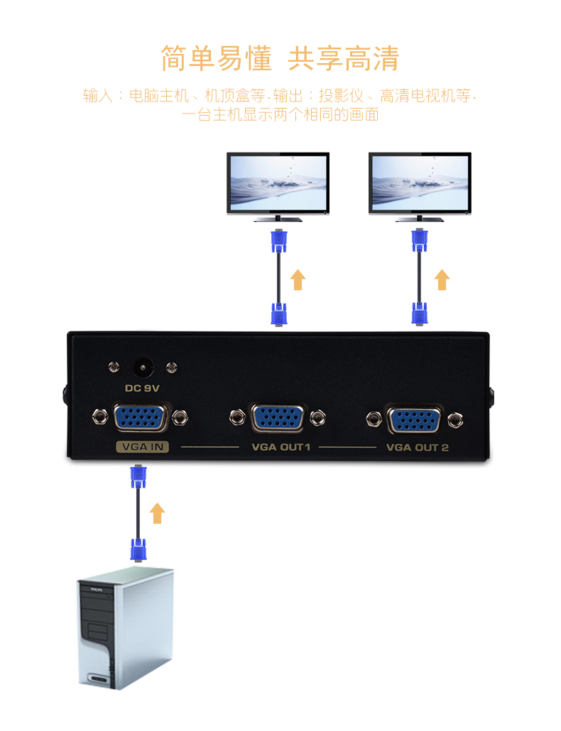 1:500MHz 系列VGA分配器是高清VGA信號(hào)分配器,適用于液晶電視機(jī)和投影儀等大屏幕顯示設(shè)備。具有長(zhǎng)距離驅(qū)動(dòng)功能