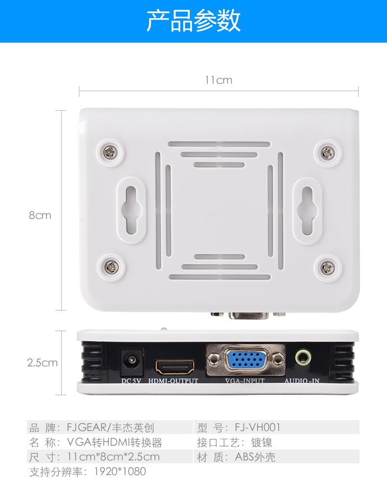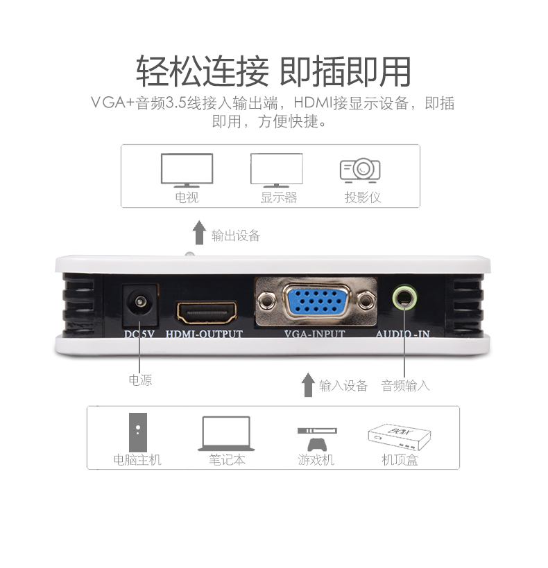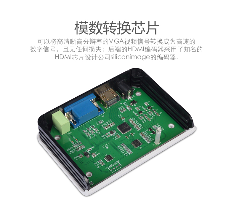 這是一款高清信號轉(zhuǎn)換器,通過智能芯片的處理,它可以將VGA模擬信號和AUDIO模擬信號轉(zhuǎn)換成一路HDMI信號;產(chǎn)品廣泛運用于臺式電腦/筆記本/DVD/機頂盒,播放器,攝像機等設備VGA信號源輸入,通過此轉(zhuǎn)換器連接后使高清電視,監(jiān)視器等顯示設備輸出hdmi高清視頻信號,從而解決了用戶模擬轉(zhuǎn)數(shù)字的顯示設備諒解方案,給您帶來炒房的高清視覺盛宴。