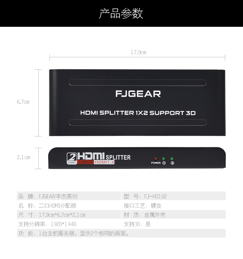 HDMI 一分二 FJ-4K102-M 豐杰英創(chuàng)HDMI分配器 4K