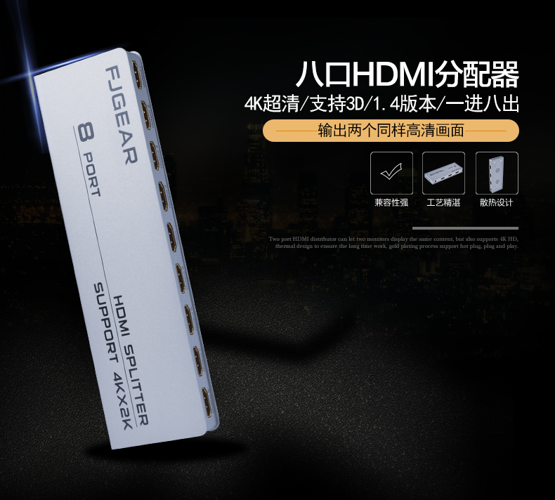 八口HDMI超清分配器,版本:HDMI1.4